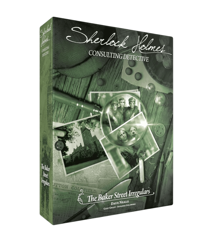 A cooperative deduction and investigation game in which players step into the role of detectives for the cases that Sherlock Holmes gives them. Each case provides a series of clues through newspapers, maps, and testimonies. The players must decide, with the help of newspapers and a map of London, where to go and who to investigate to solve the case.