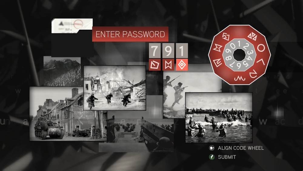 The second phase of this puzzle is a Caesar cipher. This puzzle will show a selection of pictures, and two wheels of numbers which need a code to enter the password. Between the picture you’ll find the solution code: