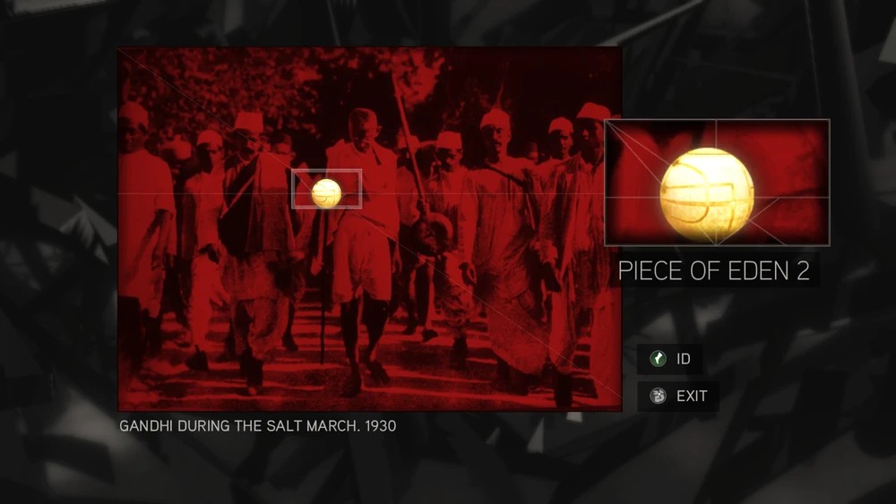 - Mahatma Gandhi: There’s a hidden morse cipher in the photo that reads “The bullet hit him in the chest”. Gandhi has the piece of Eden in his clothes.