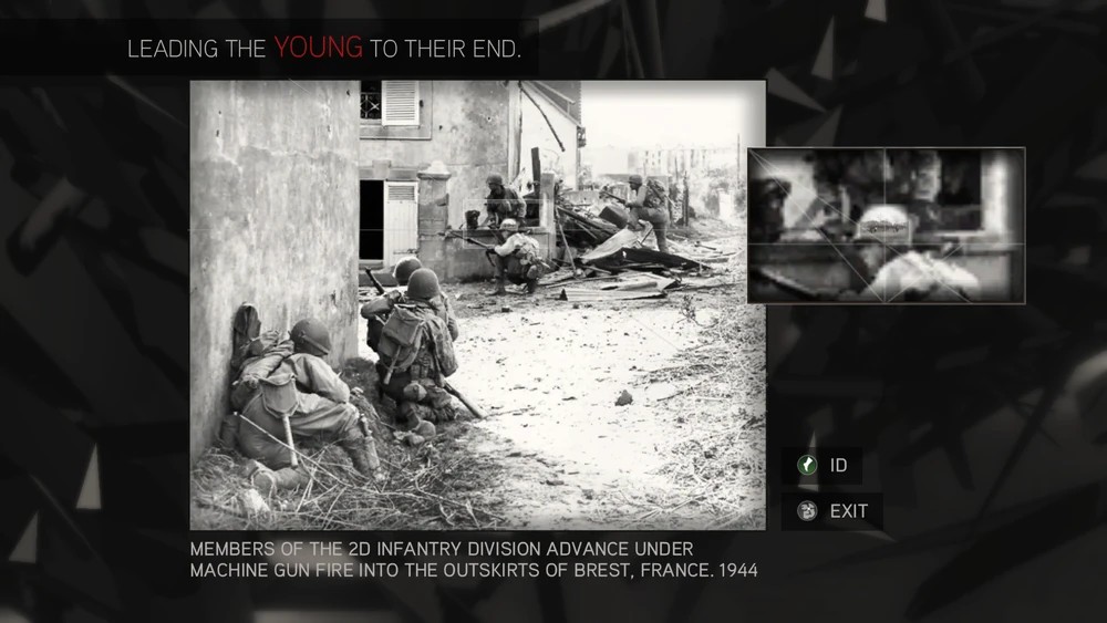 - Second image: “LEADING THE YOUNG TO THEIR END”. As it “leads” the soldiers, zoom in the soldier’s helmet that seems more exposed to the fight.