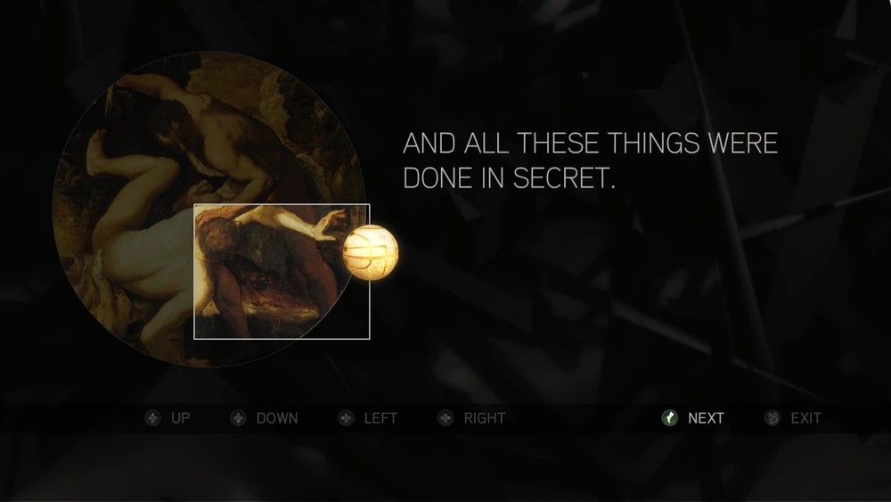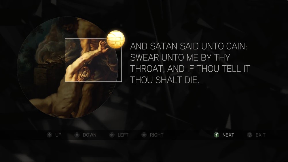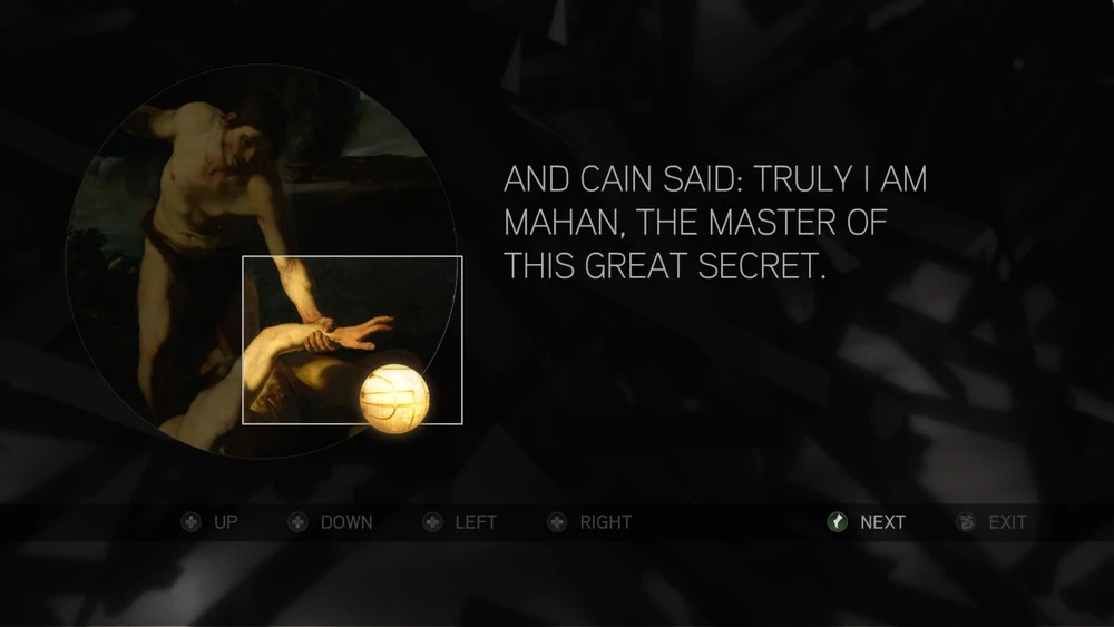 Similar to puzzle two, you’ll have to rotate the rings to see the final image. This set of three puzzles are composed of paintings from Cain and Abel.