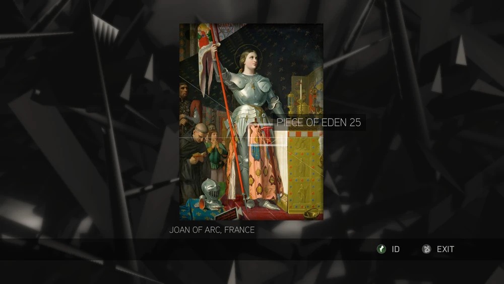 The second image is a painting from Joan of Arc. The piece of Eden 25 is located in her sword.