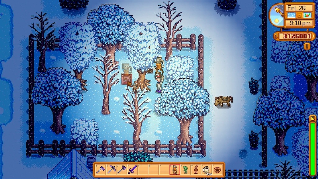 Stardew Valley is an open-ended country-life RPG. In this cosy game, the player enters a world in which they have inherited their grandfather’s farm. Armed with hand-me-down tools and a few coins, the player sets out to begin a new life, live off the land and turn the abandoned overgrown fields into a thriving home.