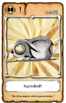 • Ingredients: these cards also have an exclamation mark (!). When a player has 5 of these cards in their possession, the game ends and this player wins.