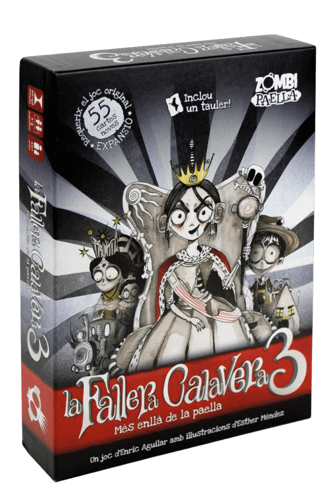 La Fallera calavera or Zombie Paella  — its title in the English translation  —,  was born out of love for Valencian Culture in 2014 thanks to a crowdfunding campaign. The creators wanted to combine the local traditions, legends and stories with a humorous and fantastical twist in a fun and competitive card game.